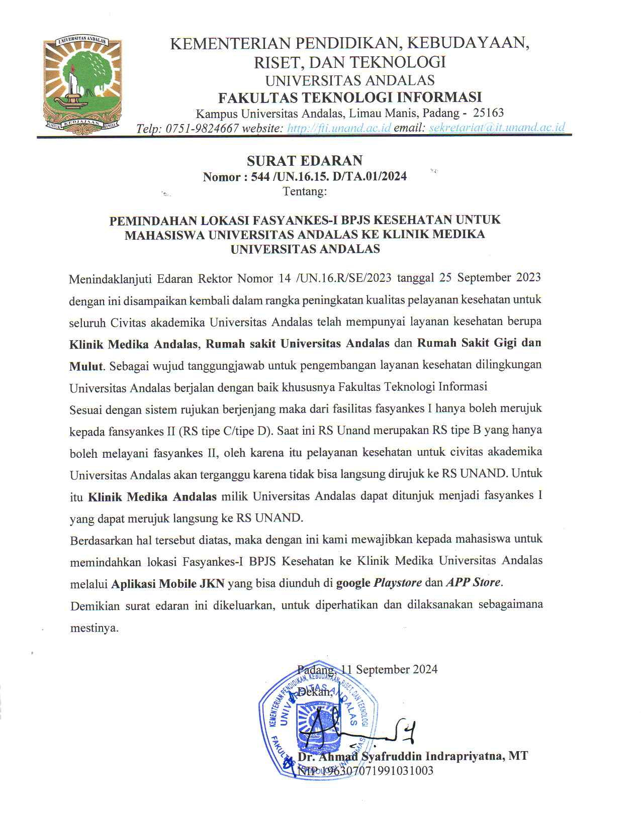 Kampus Unand Limau Manis, Padang - Fakultas Teknologi Informasi UnandSumatera Barat - 25163