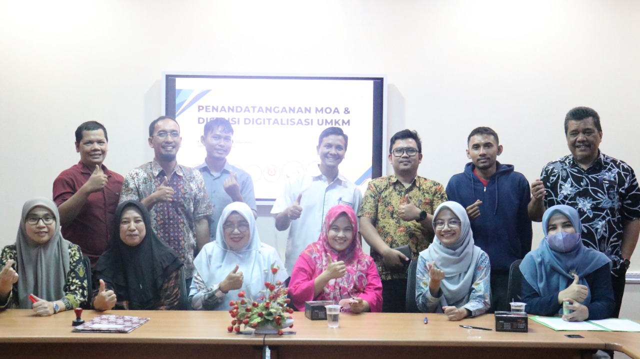 Penandatanganan ini disertai dengan sesi diskusi terkait digitalisasi UMKM. “Hal yang paling penting dalam mendukung perkembangan UMKM adalah keterhubungan antar UMKM dan kolaborasi dengan perguruan tinggi”, ungkap Bapak Taufik Hidayat, S.T. sebagai owner Takana Kaos.