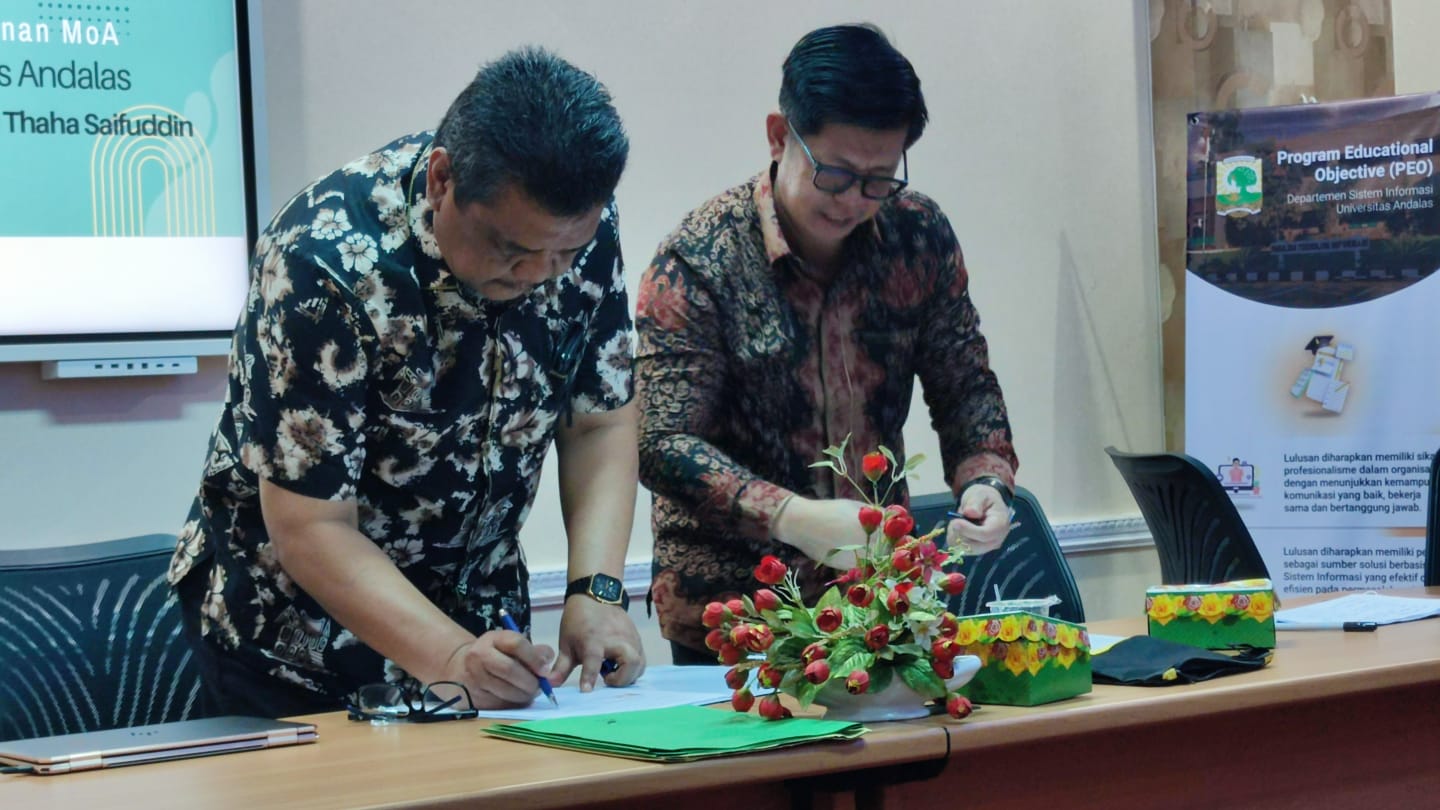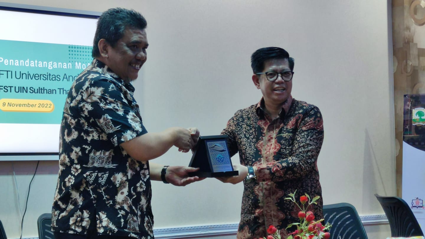 Padang (FTI UNAND) - menjalin kerjasama berupa penandatanganan Memorandum of Agreement (MoA) dengan Fakultas Sains dan Teknologi Universitas Islam Negeri Sulthan Thaha Saifuddin Jambi, pada Rabu (09/11/2022) yang bertempat di ruang rapat FTI.