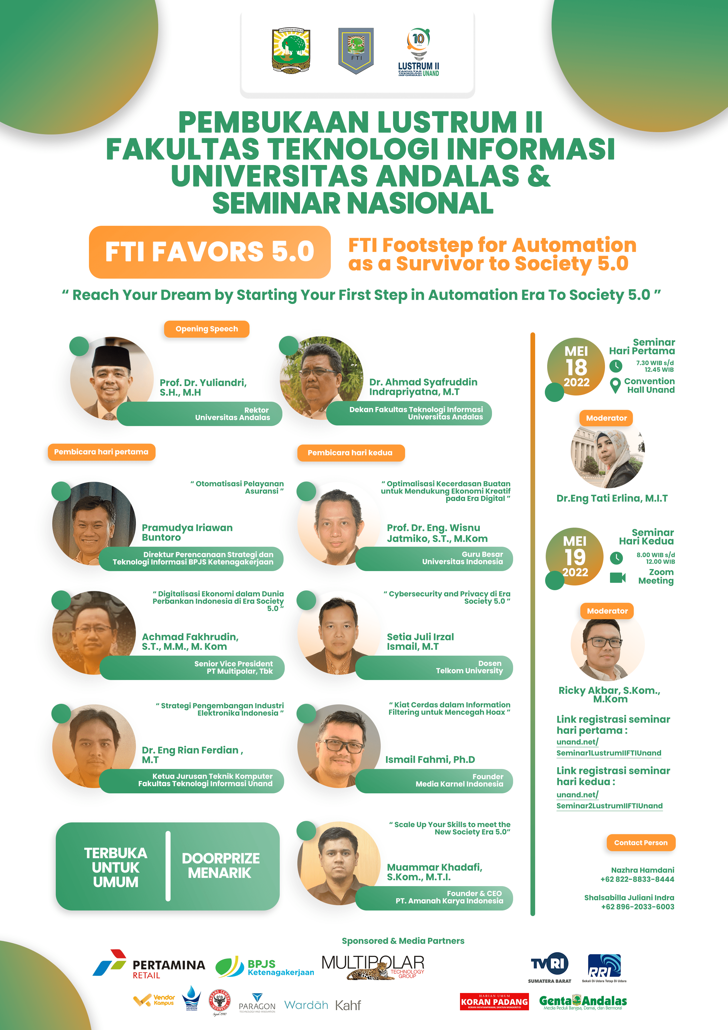 Serta Laporan dari Ketua Panitia Lustrum 2 oleh Bapak Jefril Rahmadoni, M.Kom beliau mengucapkan rasa terima kasih yang sebesar-besarnya kepada seluruh panitia yang telah meluangkan waktu dan pikirannya untuk suksesnya acara lustrum ke 2 FTI ini dari awal pembukaan hingga akhir acara nanti yaitu Rapat Senat Terbuka FTI yang akan diadakan tanggal 3 Agustus 2022.