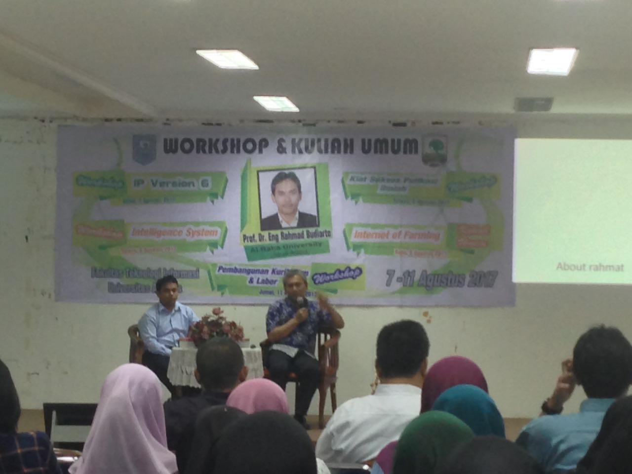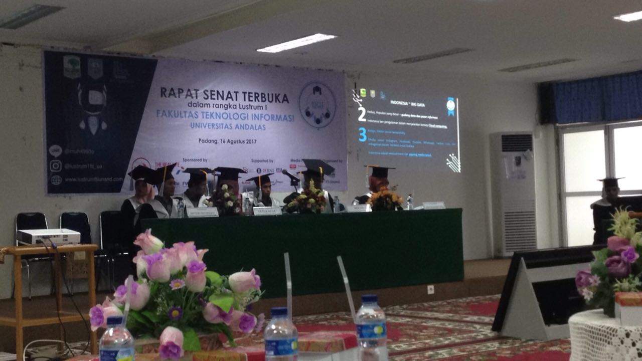 Fakultas Teknologi Informasi mengadakan kuliah umum dengan tema internet of Farming pada hari rabu tanggal 9 agustus 2017.Bertempat di gedung pustaka lantai 5 Universitas Andalas, Acara ini dumulai tepat pada pukul 09.00 wib dan berakhir pada pukul 12.00 Wib.