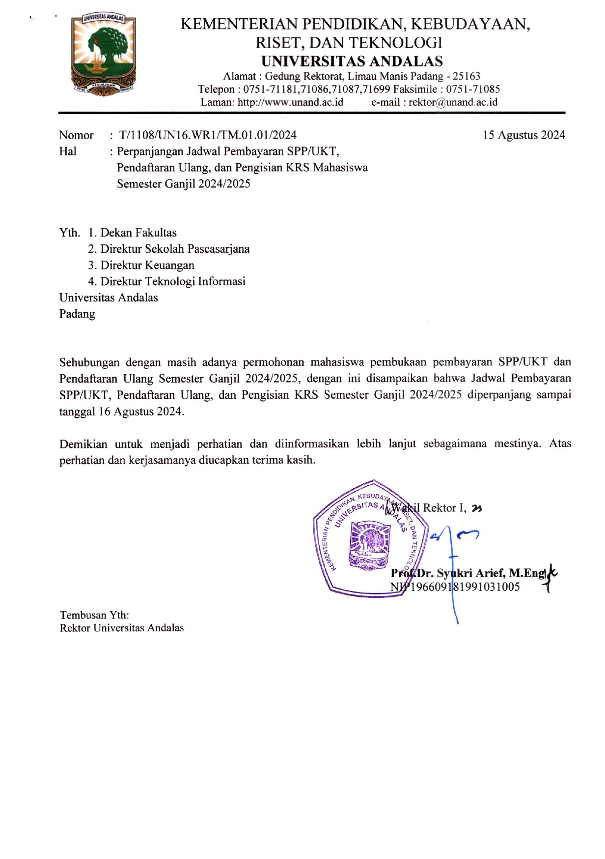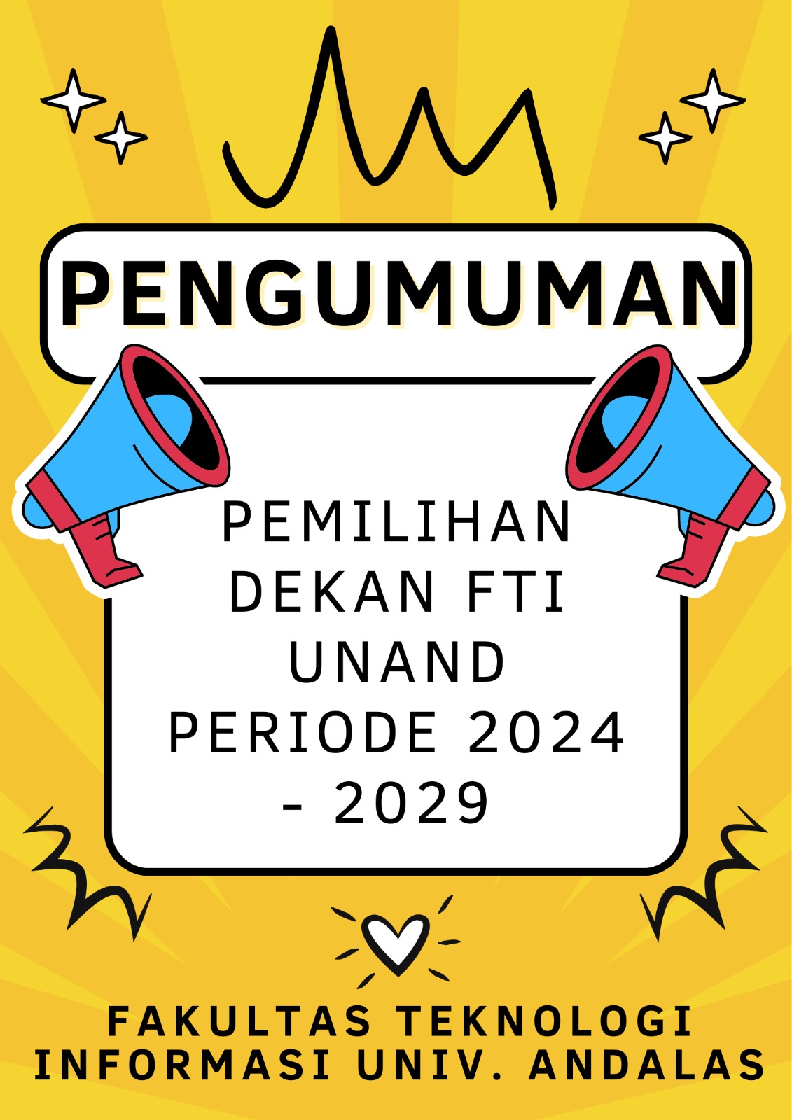Dekan Fakultas Teknologi Informasi Universitas Andalas telah menerbitkan Surat Keputusan Panitia Pemilihan Dekan FTI Unand Periode 2024 - 2029 Nomor: 76/UN16.15/D/KPT/VI/2024