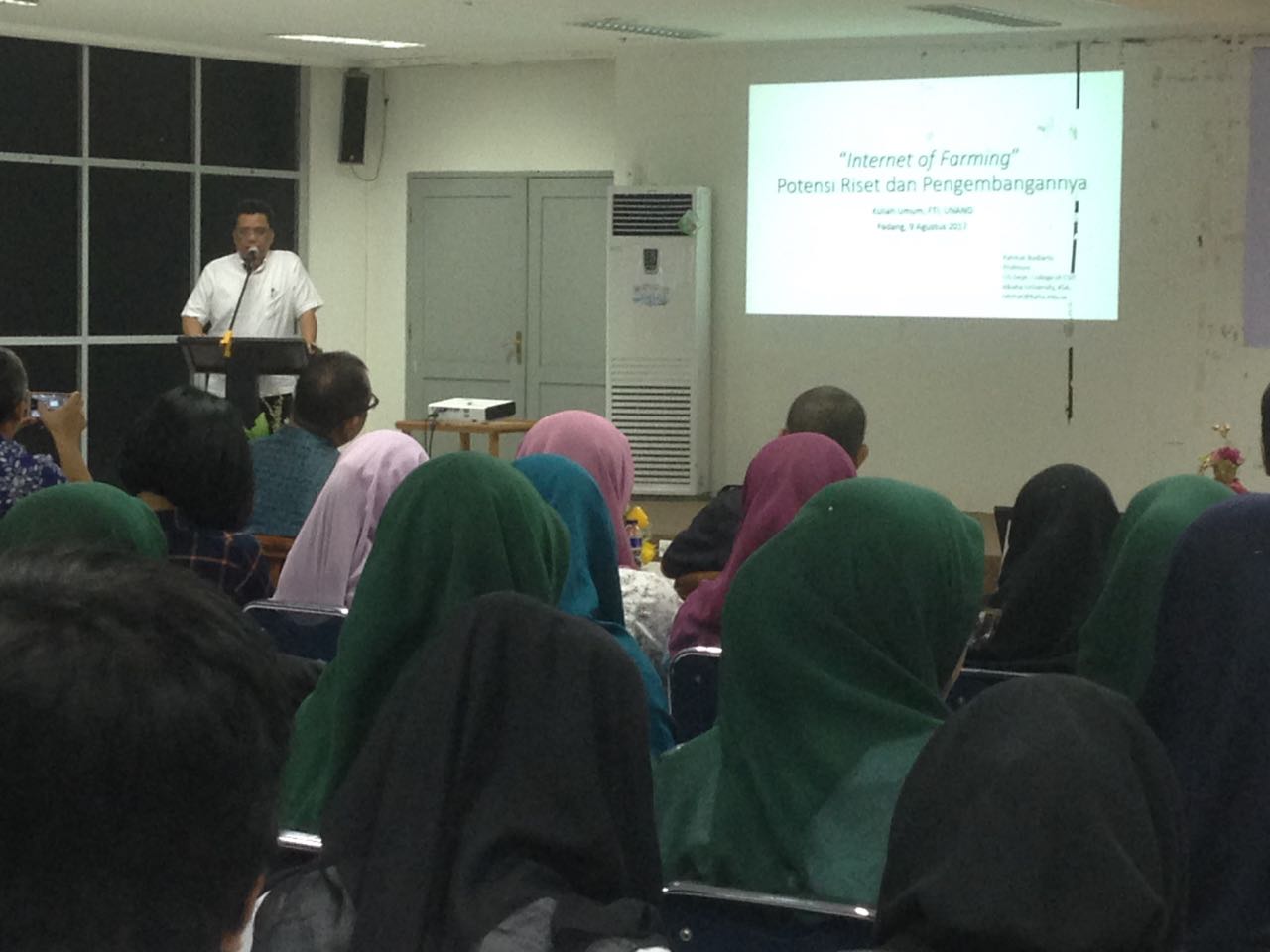 Dibuka oleh Bapak Dekan Fakultas Teknologi Informasi Universitas Andalas, Dr. Ahmad Syafruddin Indrapriyatna, Acara Kuliah Umum ini mengahadrikan Bapak Prof. Dr. Eng. Rahmat Budiarto sebagai moderator.