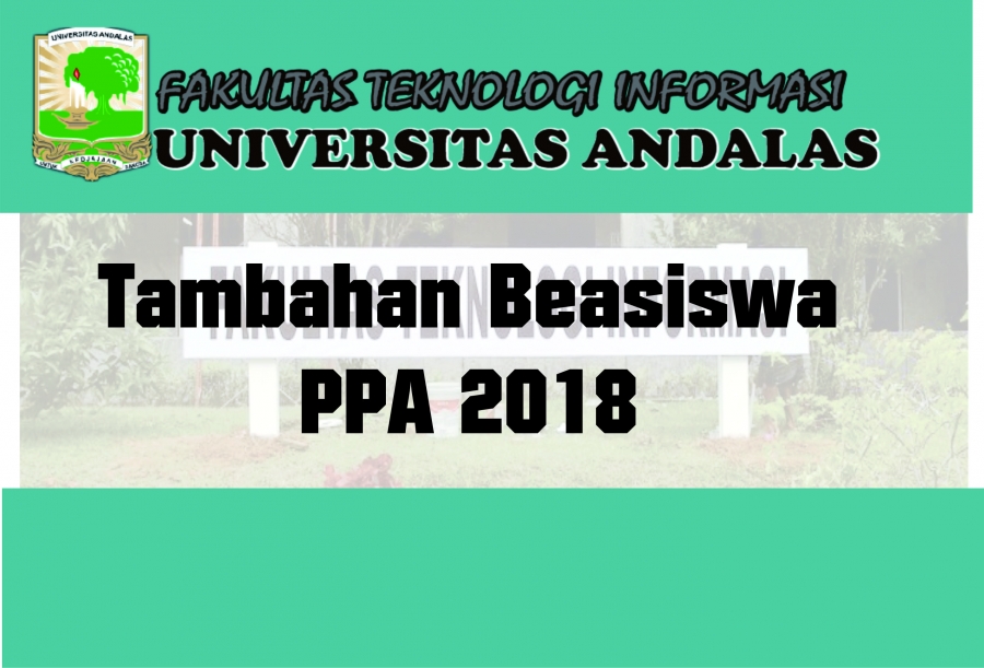 Diberitahukan kepada mahasiswa FTI Unand bahwa FTI Unand mendapatkan tambahan beasiswa PPA tahun 2018 dengan persyaratan dan kelengakapan sebagai berikut: