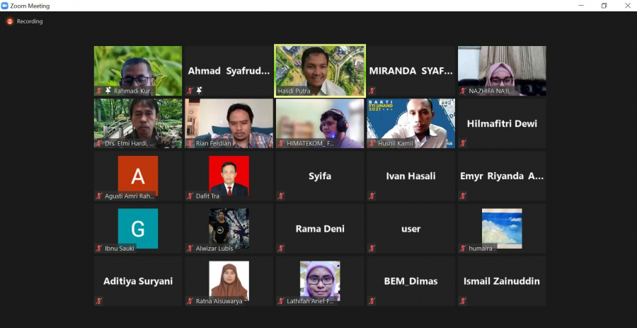 Padang (FTI-UNAND) mengadakan acara pertemuan orang tua mahasiswa angkatan 2015, 2018 dan 2020 secara daring melalui Aplikasi Zoom Meeting selama 2 (hari) berturut-turut mulai tanggal 26 Agustus 2021 khusus mahasiswa Angkatan 2015 dan tanggal 27 Agustus 2021 untuk mahasiswa Angkatan 2018 dan 2020. Tujuan diadakan acara ini adalah untuk menghindari sanksi DO terhadap mahasiswa sesuai peraturan akademik nomor 14 Tahun 2020.