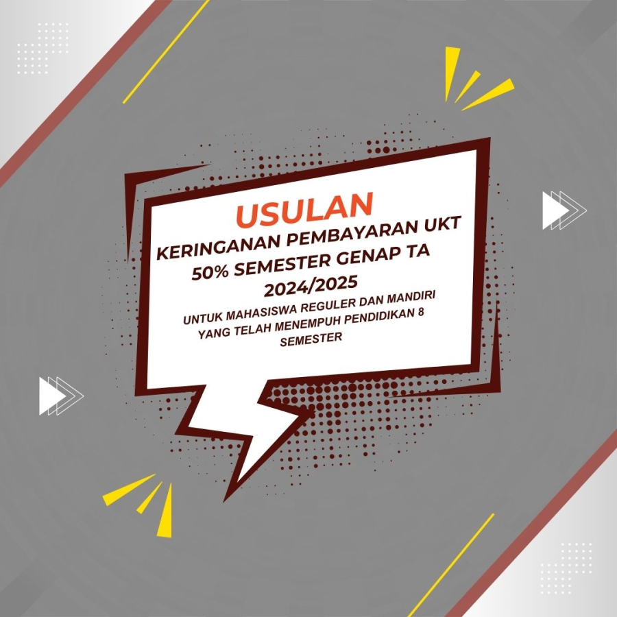 KERINGANAN PEMBAYARAN UKT 50% (untuk Mahasiswa Reguler dan Mandiri Minimal Semester 9)